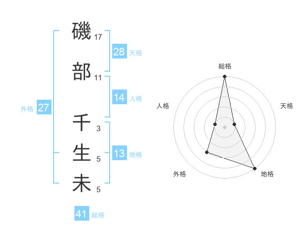 磯部 千生未さんの総格は41画の5点