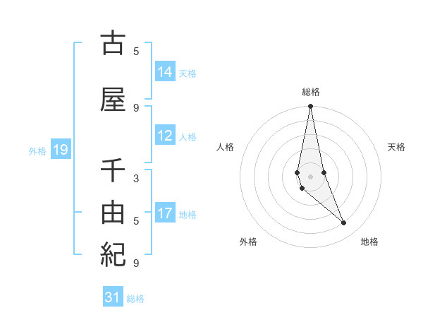 古屋 千由紀さんを姓名の画数から五運を鑑定