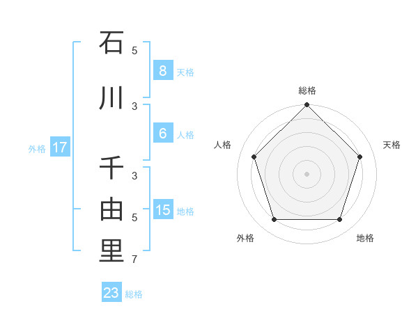石川 千由里さんの総格は23画の5点!