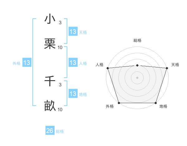 小栗 千畝さんの地格は13画の5点!
