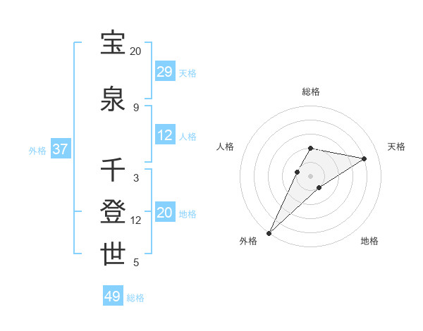 宝泉 千登世さんを姓名の画数から五運を鑑定