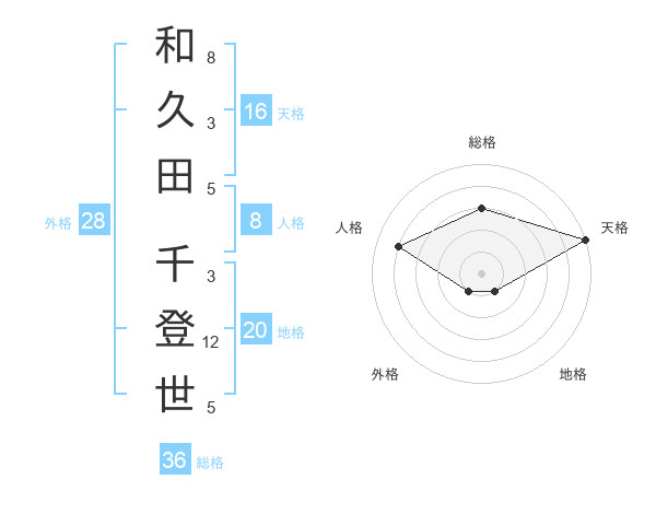 和久田 千登世さんを姓名の画数から五運を鑑定