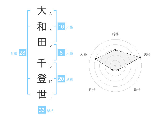 大和田 千登世さんを姓名の画数から五運を鑑定