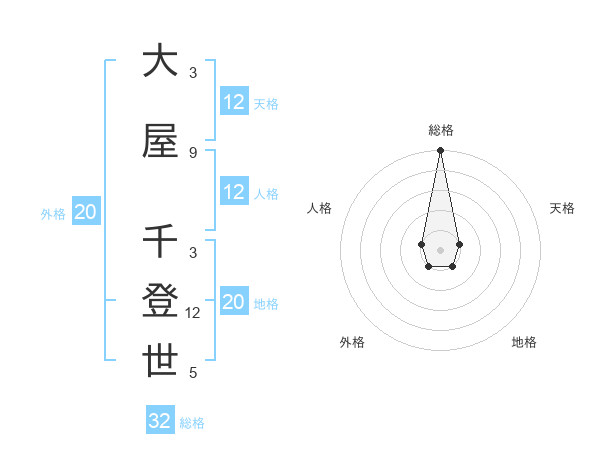大屋 千登世さんを姓名の画数から五運を鑑定