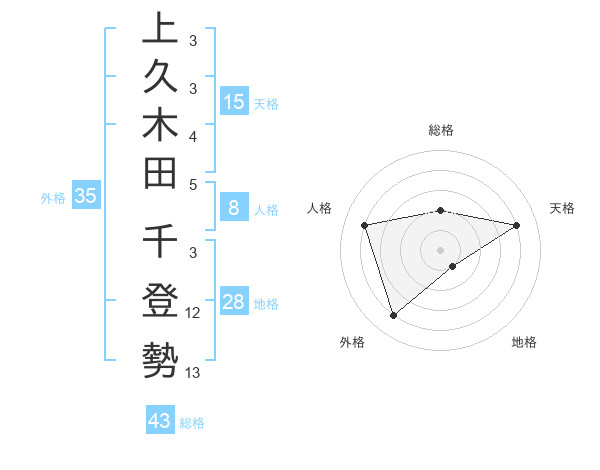 上久木田 千登勢さんを姓名の画数から五運を鑑定