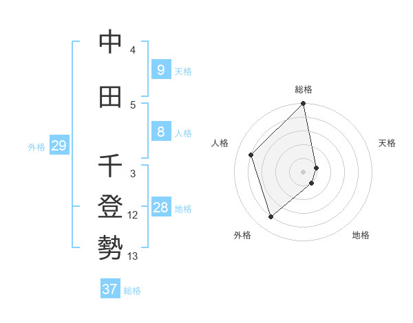 中田 千登勢さんを姓名の画数から五運を鑑定