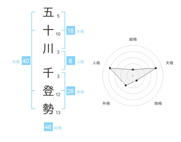 五十川 千登勢さんを姓名の画数から五運を鑑定