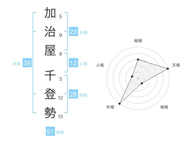 加治屋 千登勢さんを姓名の画数から五運を鑑定
