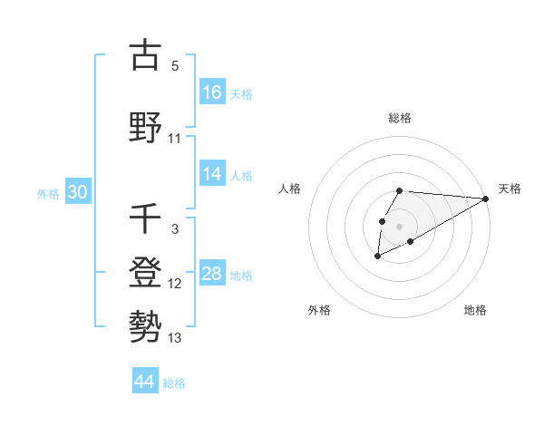 古野 千登勢さんを姓名の画数から五運を鑑定
