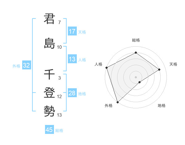 君島 千登勢さんを姓名の画数から五運を鑑定