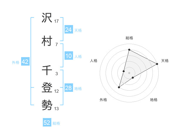 沢村 千登勢さんを姓名の画数から五運を鑑定