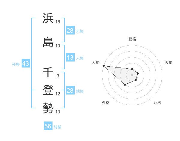 浜島 千登勢さんを姓名の画数から五運を鑑定