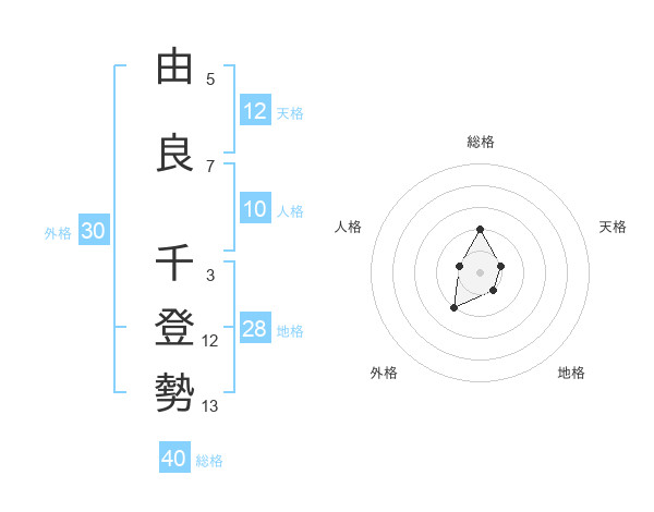 由良 千登勢さんを姓名の画数から五運を鑑定