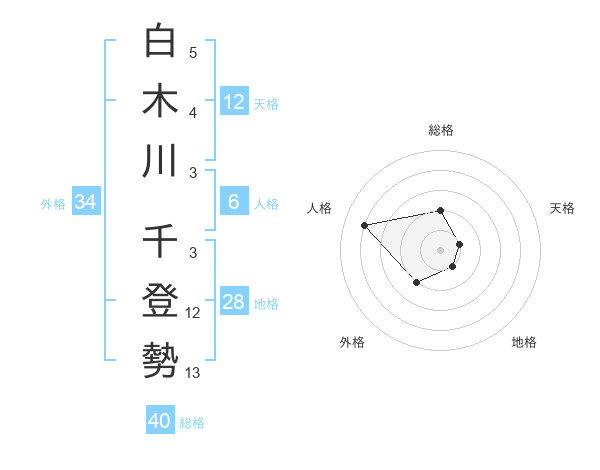白木川 千登勢さんを姓名の画数から五運を鑑定