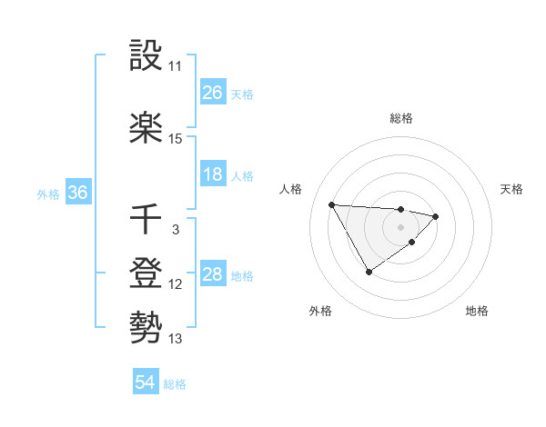 設楽 千登勢さんを姓名の画数から五運を鑑定