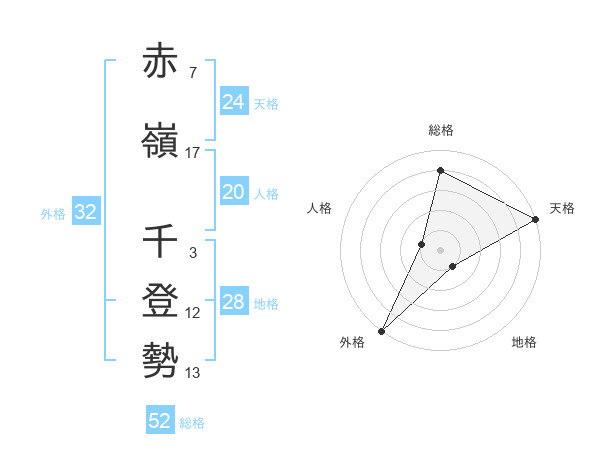 赤嶺 千登勢さんの外格は32画の5点