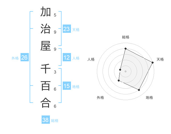 加治屋 千百合さんを姓名の画数から五運を鑑定