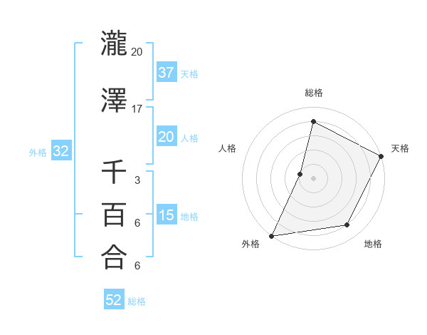 瀧澤 千百合さんの天格は37画の5点