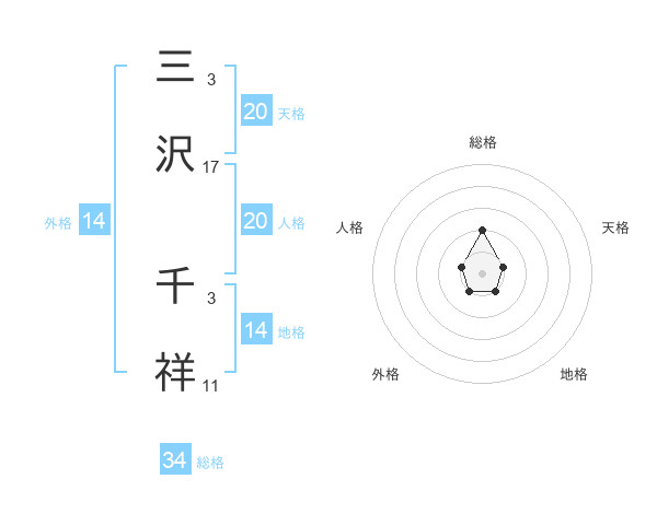 三沢 千祥さんを姓名の画数から五運を鑑定