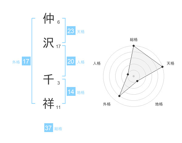 仲沢 千祥さんを姓名の画数から五運を鑑定