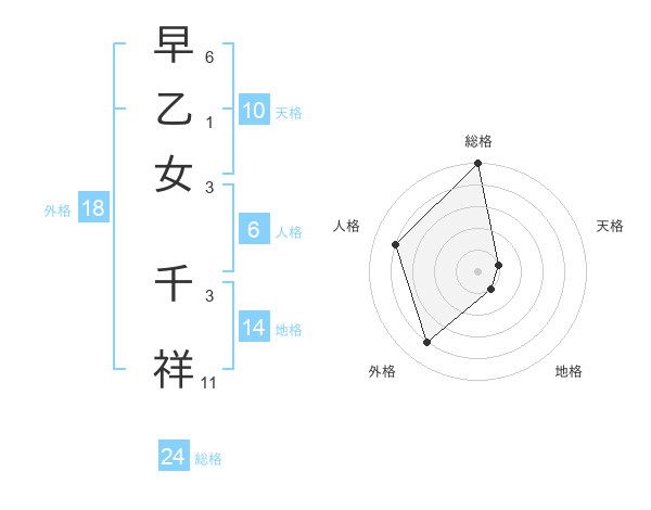 早乙女 千祥さんの総格は24画の5点!