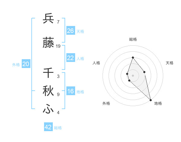 兵藤 千秋ふさんを姓名の画数から五運を鑑定