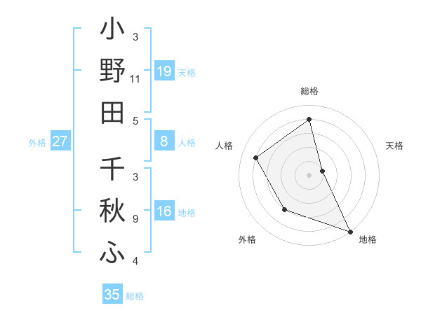 小野田 千秋ふさんを姓名の画数から五運を鑑定