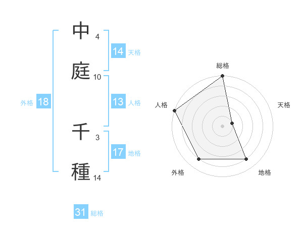 中庭 千種さんの総格は31画の5点!