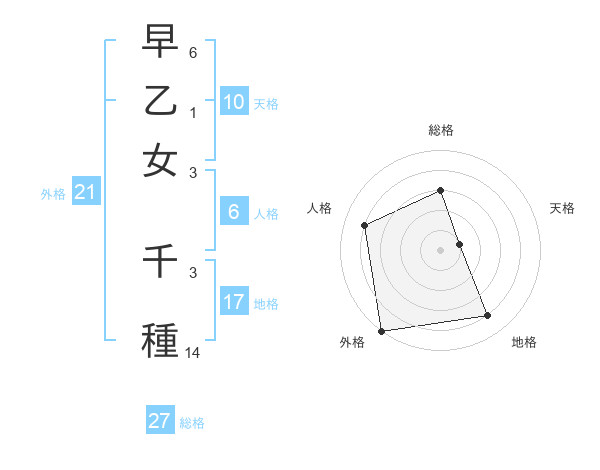 早乙女 千種さんを姓名の画数から五運を鑑定
