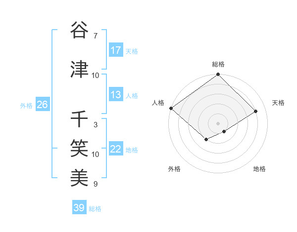 谷津 千笑美さんの総格は39画の5点!