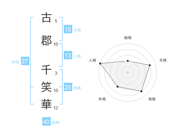古郡 千笑華さんを姓名の画数から五運を鑑定