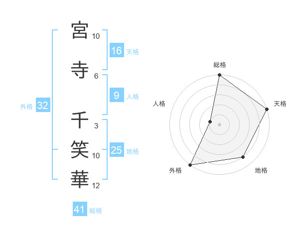 宮寺 千笑華さんの外格は32画の5点!