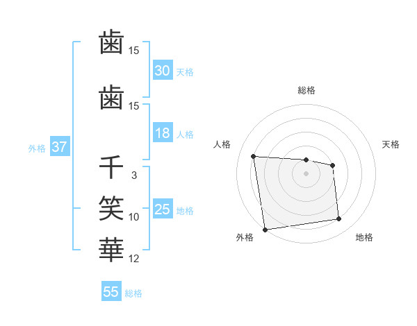 歯歯 千笑華さんの総格は55画の1点!