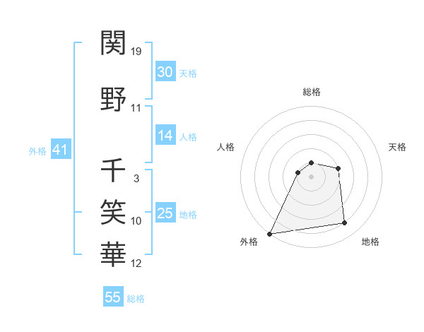 関野 千笑華さんの総格は55画の1点!