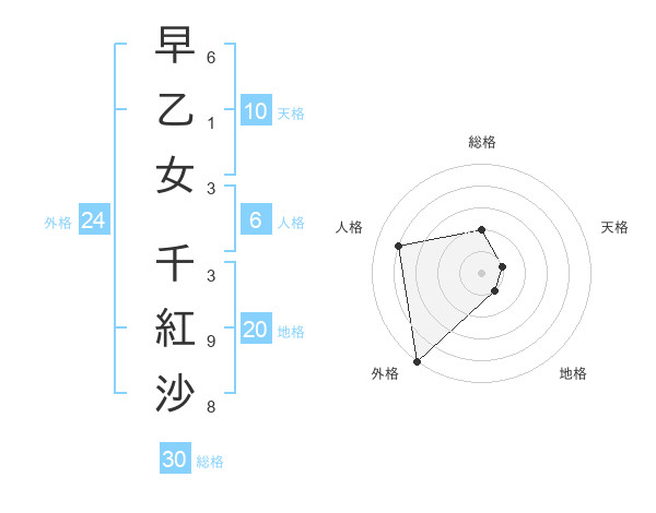 早乙女 千紅沙さんを姓名の画数から五運を鑑定