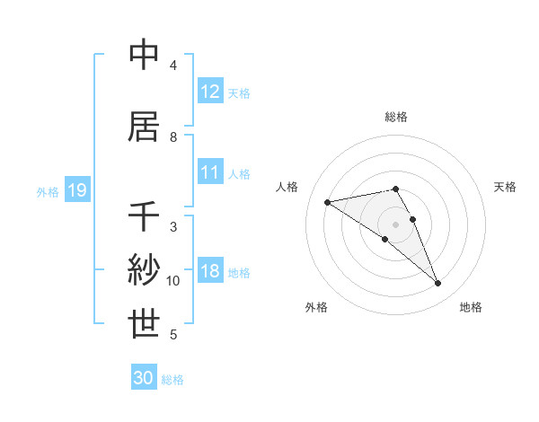 中居 千紗世さんを姓名の画数から五運を鑑定