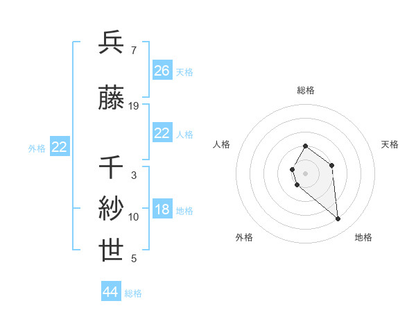 兵藤 千紗世さんを姓名の画数から五運を鑑定