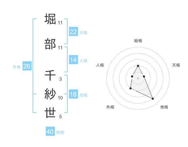 堀部 千紗世さんを姓名の画数から五運を鑑定