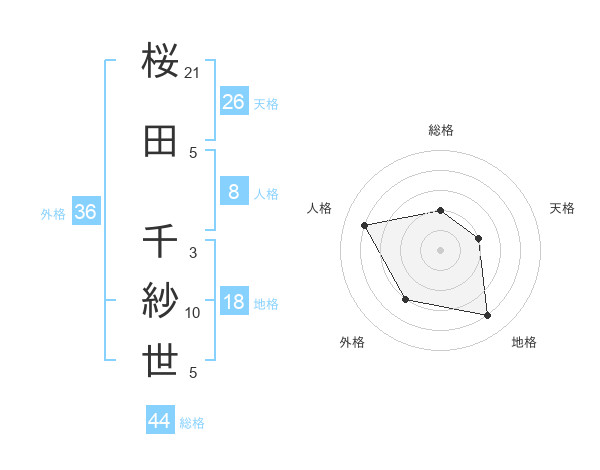 桜田 千紗世さんを姓名の画数から五運を鑑定