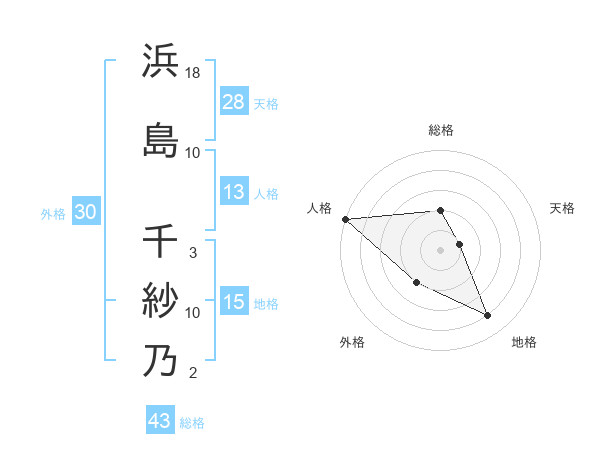 浜島 千紗乃さんの総格は43画の2点!