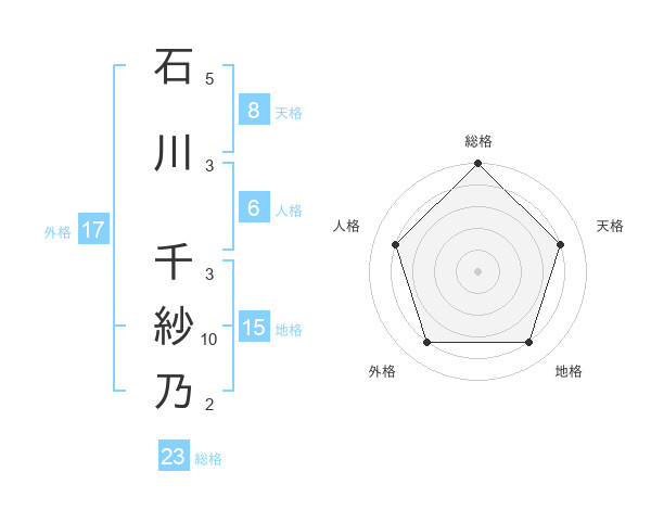 石川 千紗乃さんを姓名の画数から五運を鑑定