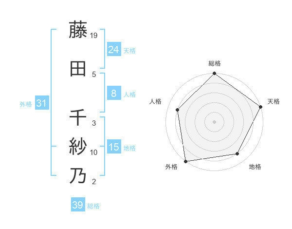 藤田 千紗乃さんを姓名の画数から五運を鑑定