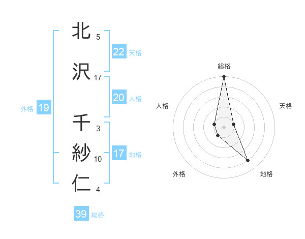 北沢 千紗仁さんの総格は39画の5点!