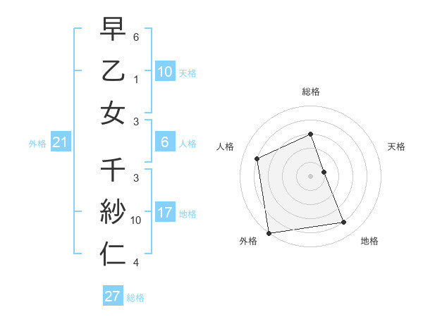早乙女 千紗仁さんの総格は27画の3点!
