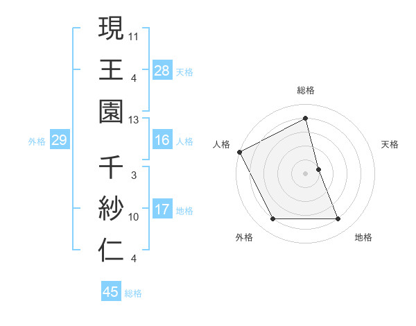 現王園 千紗仁さんの総格は45画の4点