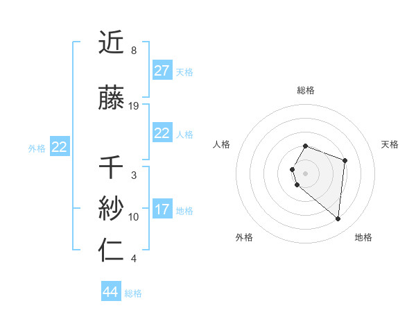近藤 千紗仁さんを姓名の画数から五運を鑑定
