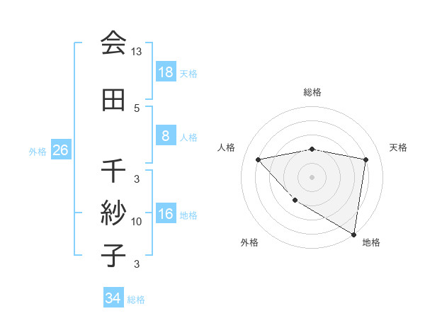 会田 千紗子さんを姓名の画数から五運を鑑定