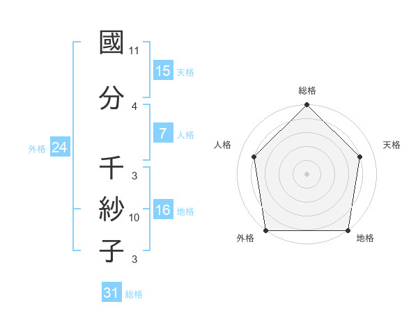國分 千紗子さんの外格は24画の5点!