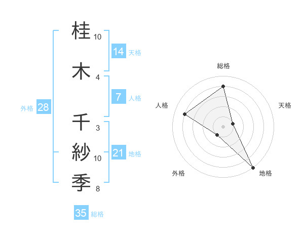 桂木 千紗季さんを姓名の画数から五運を鑑定