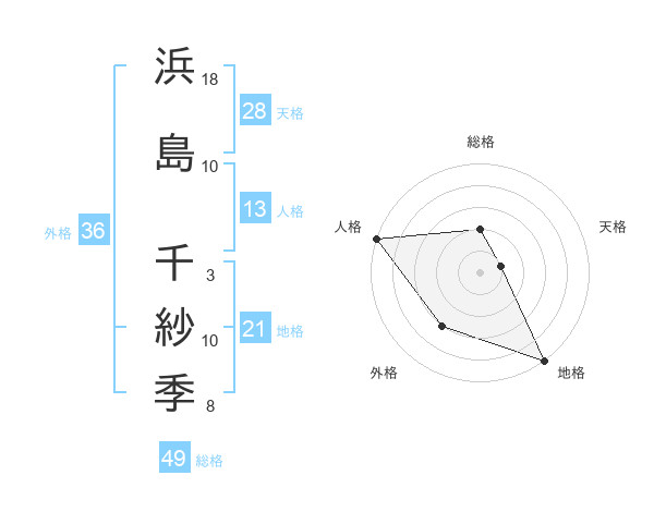 浜島 千紗季さんを姓名の画数から五運を鑑定